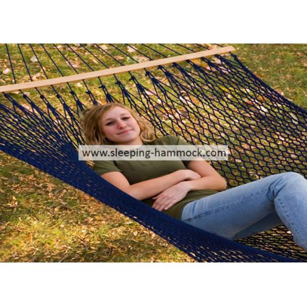 all weather polyester rope hammock double size with solid hardwood bars blue